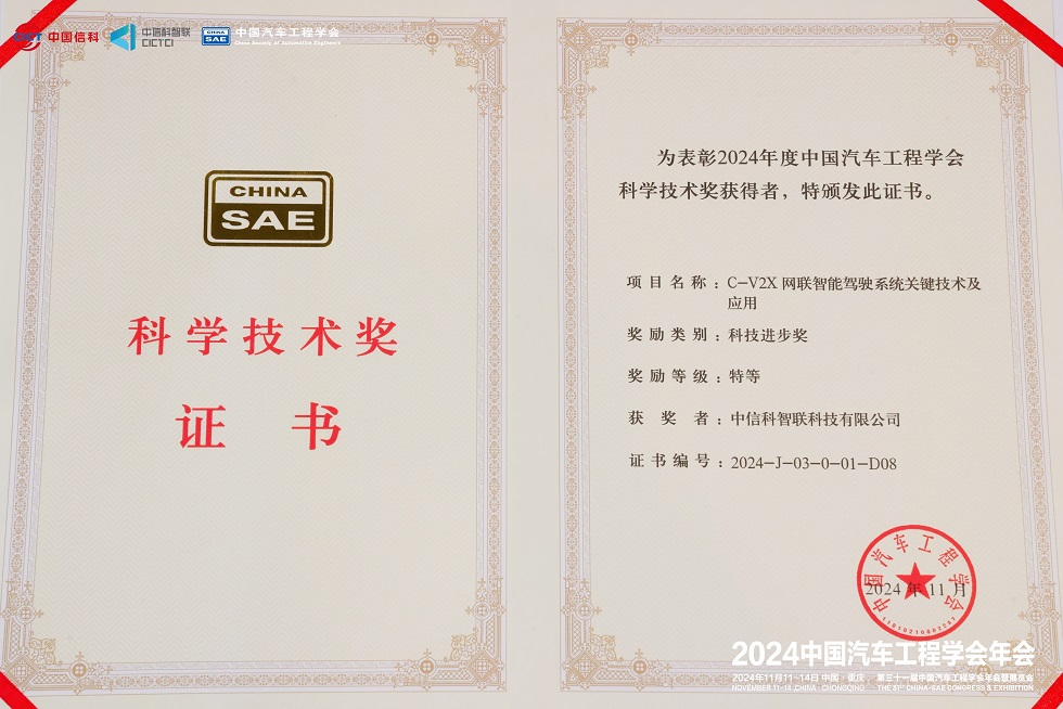 為表彰在推動(dòng)行業(yè)科技進(jìn)步中做出杰出貢獻(xiàn)的單位和個(gè)人,中國(guó)汽車(chē)工程學(xué)會(huì)同期特別舉辦了首屆中國(guó)汽車(chē)工程學(xué)會(huì)科學(xué)技術(shù)獎(jiǎng)勵(lì)大會(huì)暨高等級(jí)獎(jiǎng)項(xiàng)技術(shù)分享會(huì)。由中國(guó)信科集團(tuán)、中信科智聯(lián)、中汽中心、中國(guó)一汽、蔚來(lái)汽車(chē)、東風(fēng)悅享、北京車(chē)網(wǎng)、國(guó)汽(北京)智聯(lián)等單位聯(lián)合申報(bào)的“C-V2X 網(wǎng)聯(lián)智能駕駛系統(tǒng)關(guān)鍵技術(shù)及應(yīng)用”榮獲2024年度中國(guó)汽車(chē)工程學(xué)會(huì)科學(xué)技術(shù)獎(jiǎng)-特等獎(jiǎng),彰顯以上科研團(tuán)隊(duì)為智能網(wǎng)聯(lián)車(chē)產(chǎn)業(yè)發(fā)展作出的突出貢獻(xiàn)。此獎(jiǎng)不僅是對(duì)獲獎(jiǎng)?wù)叩臉s譽(yù)認(rèn)可,更是對(duì)整個(gè)行業(yè)創(chuàng)新精神的一次集中展示,激勵(lì)著更多科研人員和團(tuán)隊(duì)為汽車(chē)科技的進(jìn)步貢獻(xiàn)力量。