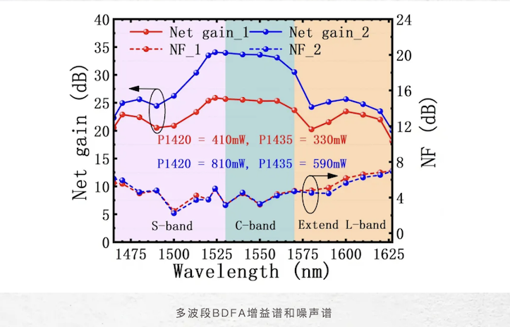 157-nm High-gain, Low-noise S-, C-, and Extend L-band Amplifier Using Cascaded Discrete Raman and Bismuth-doped Fiber Amplification:介紹了長(zhǎng)飛公司自主研發(fā)的基于拉曼放大和摻鉍光纖放大,全球首次實(shí)現(xiàn)了增益寬度為157nm的SCL三波段放大器,其平均增益為22.7dB,平均噪聲為3.6dB,技術(shù)水平行業(yè)領(lǐng)先。