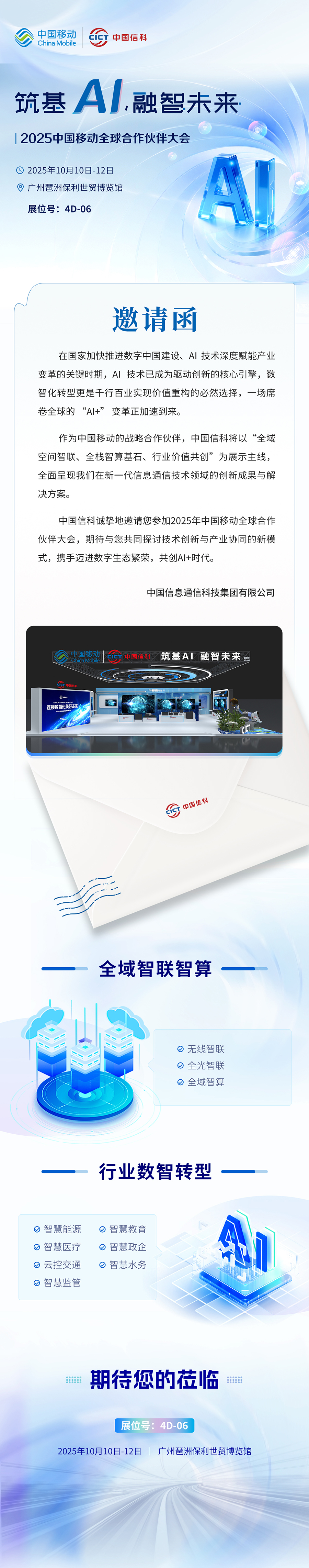 碳硅共生,合創(chuàng)AI+時代。2025年10月10-12日,第13屆中國移動全球合作伙伴大會將在廣州召開。