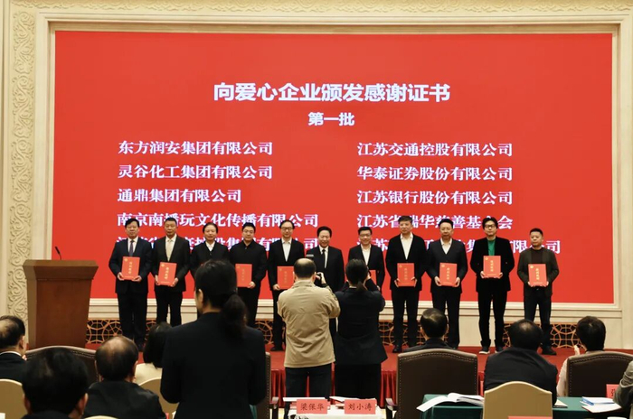 11月15日上午,江蘇省慈善總會成立20周年座談會在南京召開。省長劉小濤出席會議并講話,向愛心企業(yè)和個人頒發(fā)捐贈證書。省慈善總會第一屆、第二屆名譽會長梁保華,省慈善總會第一屆、第二屆理事會會長俞興德,省慈善總會第三屆理事會會長蔣宏坤向愛心企業(yè)代表頒發(fā)感謝證書。省慈善總會第四屆理事會會長李小敏致辭。中國慈善聯(lián)合會副會長、中國企業(yè)改革與發(fā)展研究會副會長、通鼎集團有限公司董事長沈小平作為愛心企業(yè)家代表受邀出席并獲頒證書。
