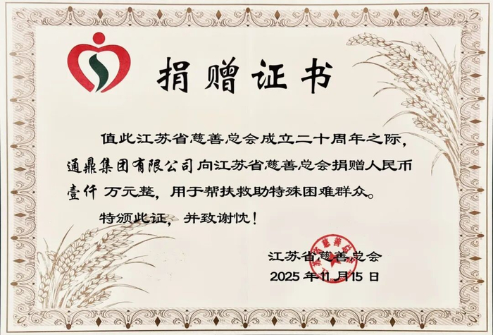 通鼎集團始終秉持"得諸社會、還諸社會"的慈善理念,堅守實業(yè)、聚焦主業(yè),在做大做強企業(yè)的同時,積極履行社會責任,主動融入中國式現(xiàn)代化江蘇新實踐大局,不斷創(chuàng)新慈善參與方式,拓展慈善幫扶領(lǐng)域,致力于帶動更多社會力量投身慈善事業(yè),為江蘇慈善事業(yè)高質(zhì)量發(fā)展注入新的活力,為促進共同富裕、實現(xiàn)中華民族偉大復(fù)興的中國夢貢獻通鼎力量。