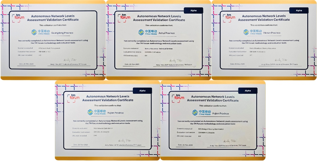 領(lǐng)跑全球!中國移動(dòng)多項(xiàng)自智網(wǎng)絡(luò)創(chuàng)新成果登頂TM Forum全球評(píng)測(cè)