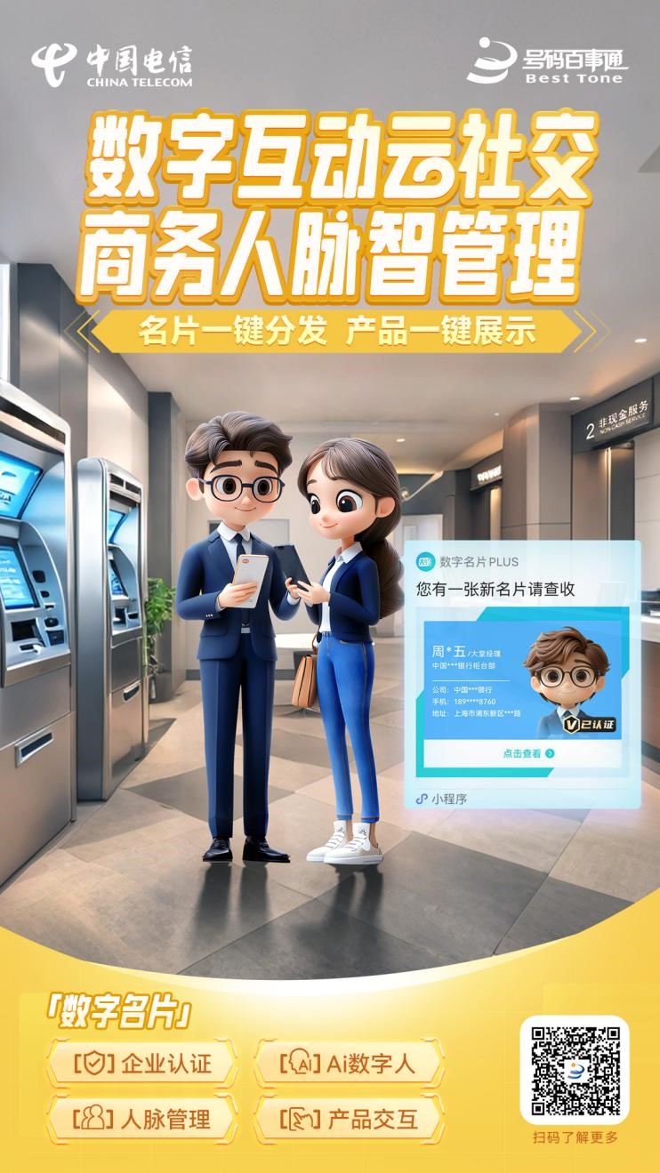 中國(guó)電信數(shù)字名片不僅僅是一張社交名片,更是企業(yè)邁向數(shù)字化、智能化運(yùn)營(yíng)的有力工具。未來(lái),號(hào)百公司將繼續(xù)堅(jiān)持以客戶需求為導(dǎo)向,通過(guò)持續(xù)的技術(shù)創(chuàng)新和服務(wù)優(yōu)化,不斷拓展數(shù)字名片與更多企業(yè)應(yīng)用場(chǎng)景深度融合,助力企業(yè)在數(shù)字經(jīng)濟(jì)時(shí)代實(shí)現(xiàn)高質(zhì)量發(fā)展。