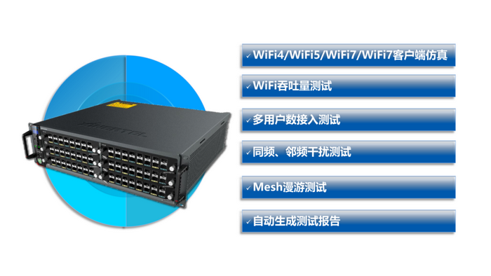 信而泰針對WiFi7高吞吐、低時(shí)延、大并發(fā)、抗干擾、高可靠等技術(shù)特性自主研發(fā)了X-Air系列產(chǎn)品,其是面向訪問接入點(diǎn)(AP)、家庭網(wǎng)關(guān)及 WLAN 系統(tǒng)的專業(yè)測試設(shè)備,憑借真實(shí)多終端模擬與真實(shí)4-7 層應(yīng)用模擬,可以精準(zhǔn)衡量WLAN設(shè)備的基本性能、功能完整性與長期穩(wěn)定性。