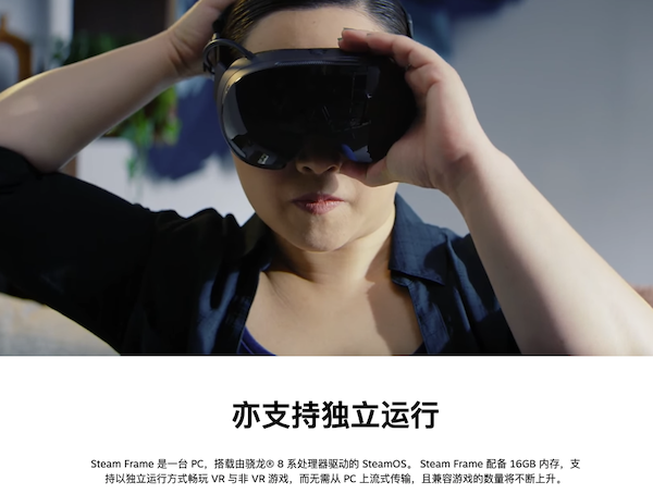 盡管是一款VR設備,Steam Frame卻采用了一顆手機芯片作為處理器,那就是第三代驍龍8。而從產(chǎn)品的功能介紹上來看,Steam Frame運行SteamOS,并聲稱“是臺PC”,支持以獨立運行方式暢玩VR與非VR游戲,而無需從PC上流式傳輸,且兼容游戲的數(shù)量將不斷上升。
