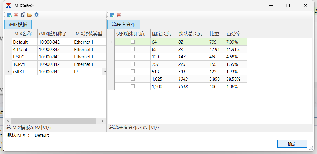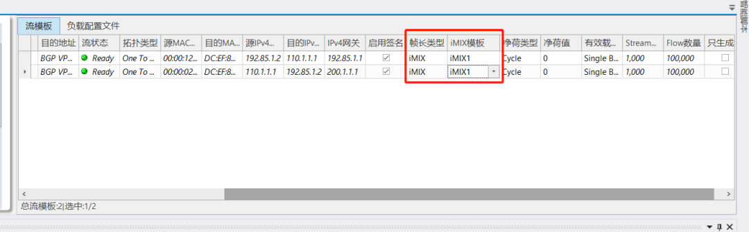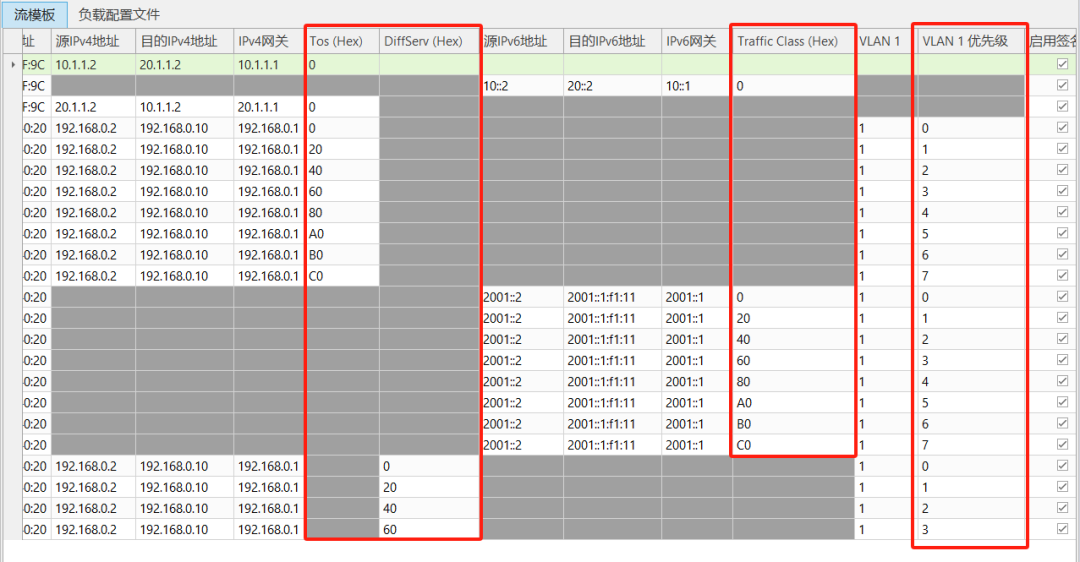 流量能力:支持發(fā)送固定幀長和iMIX混合幀長流量,同時支持VLAN/IPv4/IPv6/MPLS等多種優(yōu)先級標記,提供細粒度的VPN級性能統(tǒng)計。