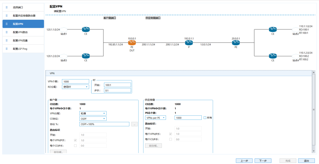Step-4.配置1000個IP VPN,并設置RD、RT都從100:1開始遞增;