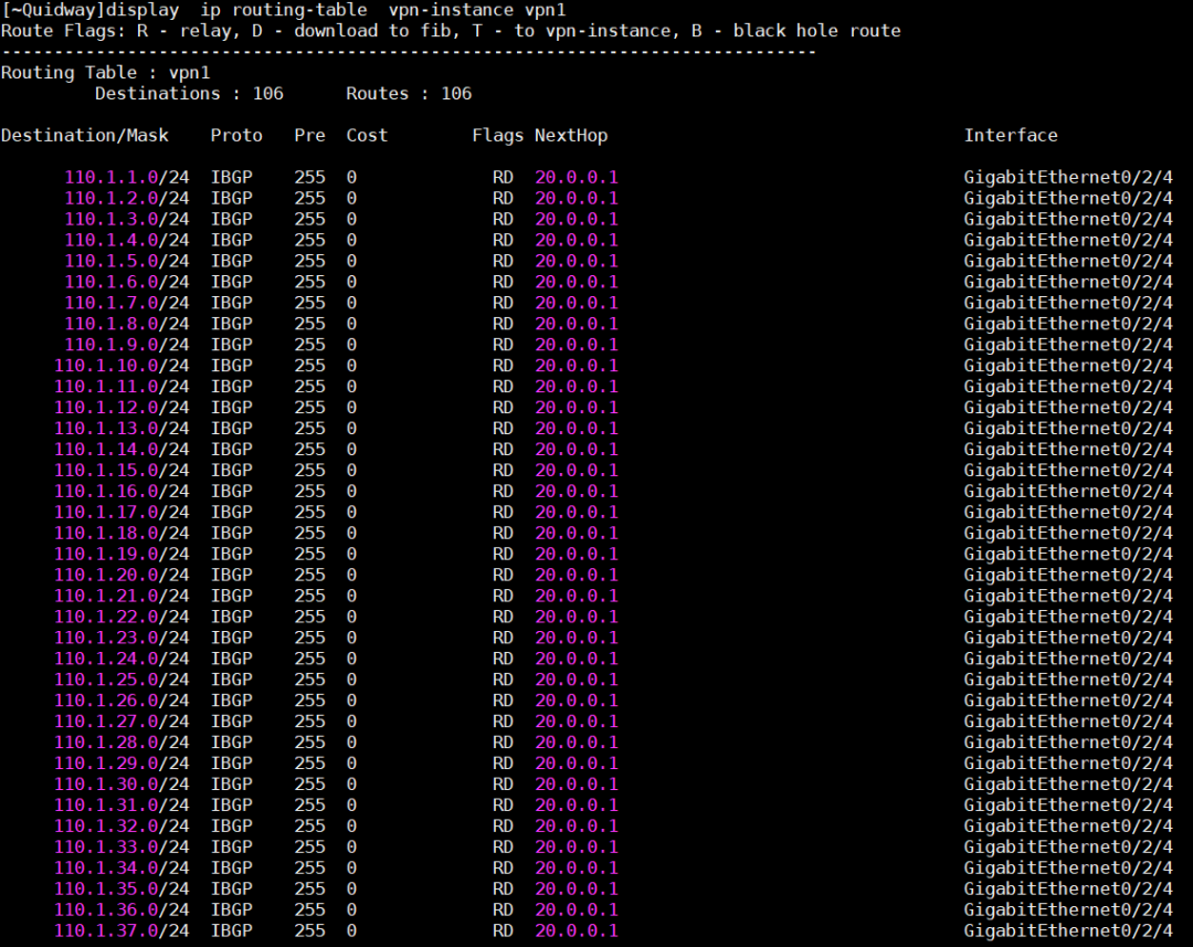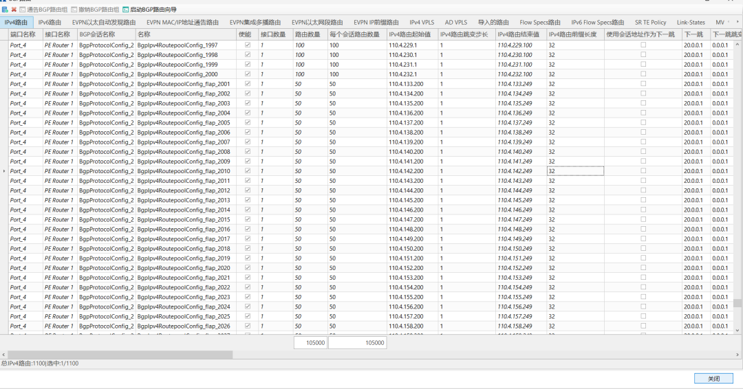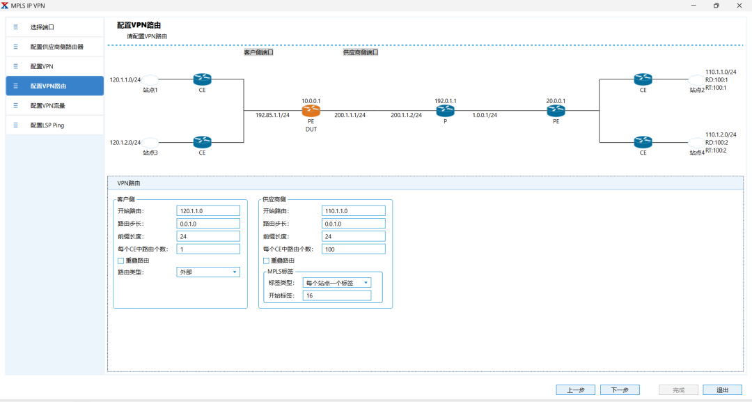 Step-5.設置PE側(cè)每VPN通告100條私網(wǎng)路由,即可完成向?qū)В?/P>