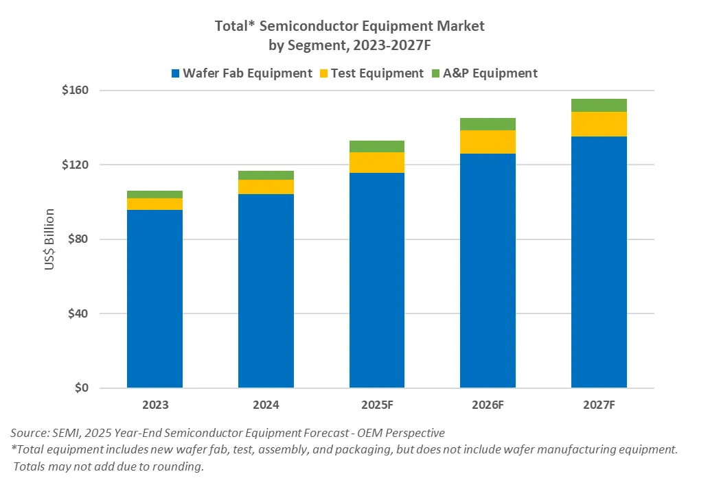 SEMI 預(yù)測(cè):今年全球半導(dǎo)體設(shè)備市場(chǎng) 1330 億美元,2027 年突破 1500 億美元