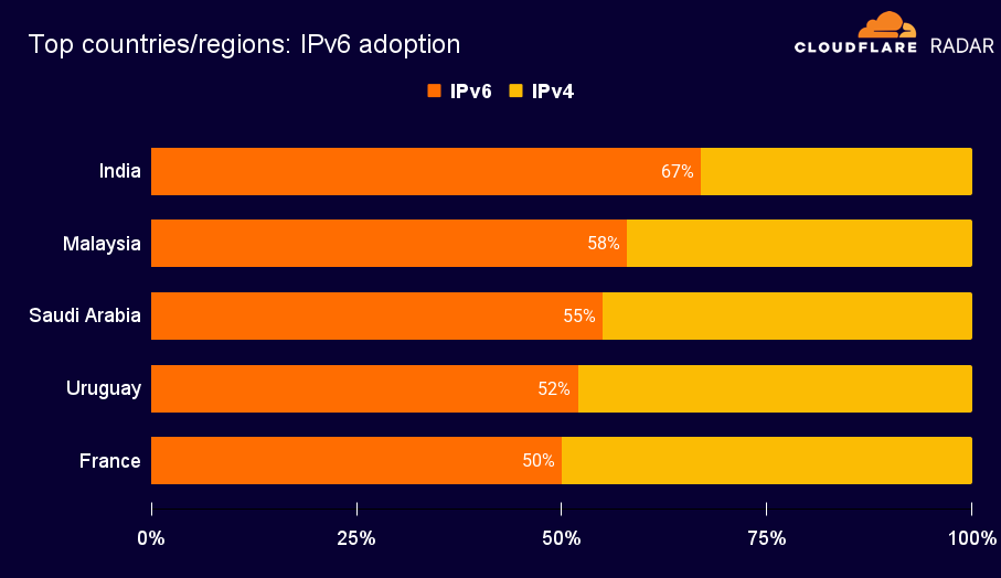 IPv6 流量占比微增至 29%,印度以 67% 采用率領(lǐng)跑全球