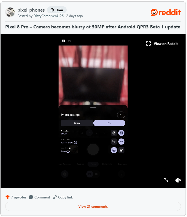 12 月 21 日消息,谷歌近期面向符合條件的設(shè)備推送了 Android 16 QPR3 Beta 1 版本更新,然而越來越多的用戶反饋,此次更新引發(fā)了嚴(yán)重問題。具體來看,已有大量報(bào)告指出,谷歌 Pixel 系列手機(jī)在安裝 Android 16 QPR3 Beta 1 固件后,出現(xiàn)了相機(jī)對焦故障。