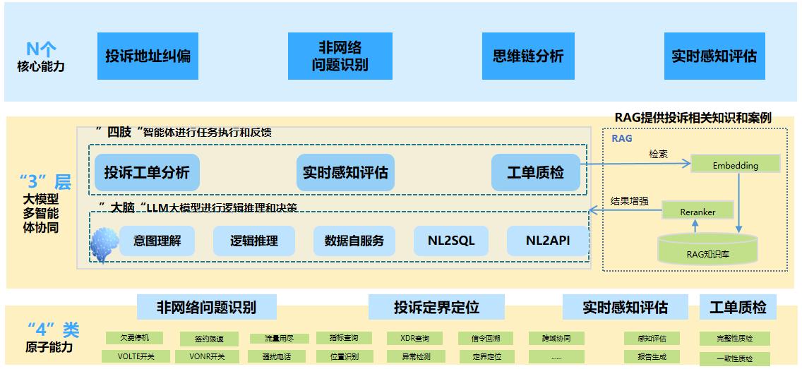 數(shù)字員工聚焦全流程優(yōu)化,融合四大智能化能力:智能地址糾偏,可實(shí)時(shí)回填用戶六級地址,提升派單準(zhǔn)確率與處理效率;非網(wǎng)絡(luò)問題自動(dòng)識別,精準(zhǔn)判斷終端開關(guān)機(jī)、欠費(fèi)、簽約異常等問題,向前賦能客服,提升前端自解決能力;基于思維鏈的網(wǎng)絡(luò)問題分析,依托通信大模型,實(shí)現(xiàn)對投訴內(nèi)容的理解與推理;實(shí)時(shí)感知后評估,閉環(huán)驗(yàn)證處理效果,持續(xù)優(yōu)化策略。