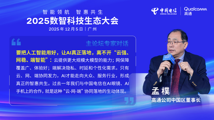 2025電信大會開幕,高通孟樸分享AI趨勢:端-邊-云協(xié)同發(fā)展,推動AI普惠落地