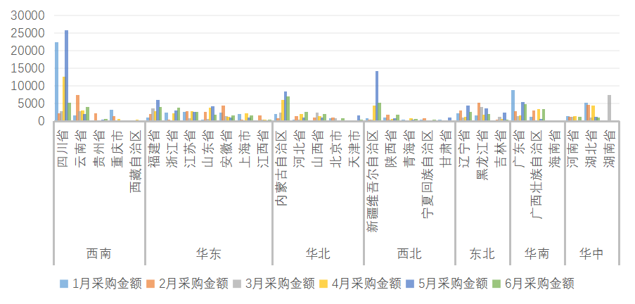 圖4:各省2025年1-6月采購金額統(tǒng)計(單位:萬元)