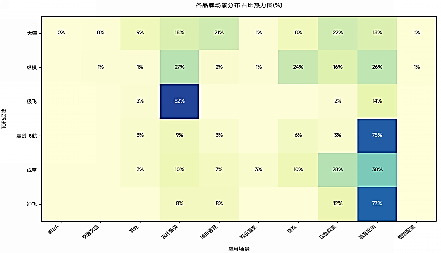 圖5:2025年1-6月TOP6品牌應(yīng)用場景分布熱力圖
