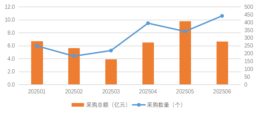 圖1:2025年1-6月公開采購金額與數(shù)量分布