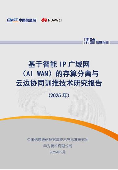 中國信通院標(biāo)準(zhǔn)所聯(lián)合發(fā)布《基于智能IP廣域網(wǎng)(AI WAN)的存算分離與云邊協(xié)同訓(xùn)推技術(shù)研究報(bào)告(2025年)》