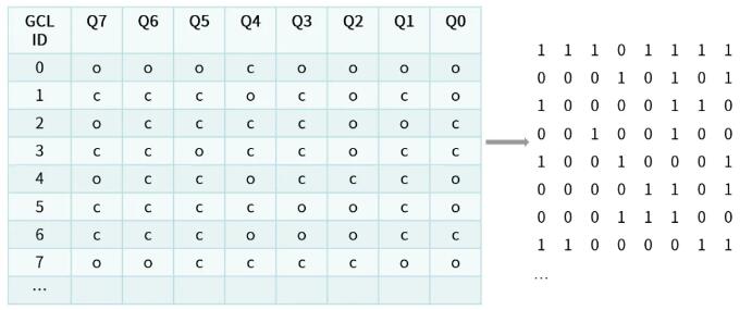 如圖1所示各隊(duì)列的門的開/關(guān)狀態(tài)由GCL精確控制。GCL可以有多行,GCL根據(jù)基準(zhǔn)時間BaseTime,循環(huán)執(zhí)行,每CycleTime執(zhí)行一次。