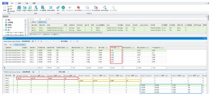 啟動Qbv流量后,測試儀將在設(shè)定的基準(zhǔn)時間到達(dá)后開始發(fā)送流量。通過查看測試儀提供的詳細(xì)統(tǒng)計(jì)信息,可進(jìn)行如下分析: