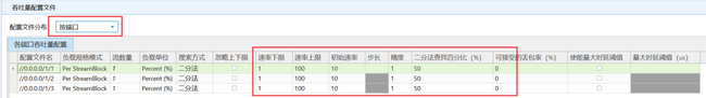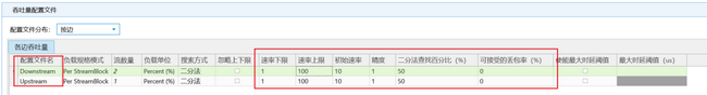 按邊分布:按上行(Upstream)、下行(Downstream)方向分別配置流量上下限、初始速率等參數。