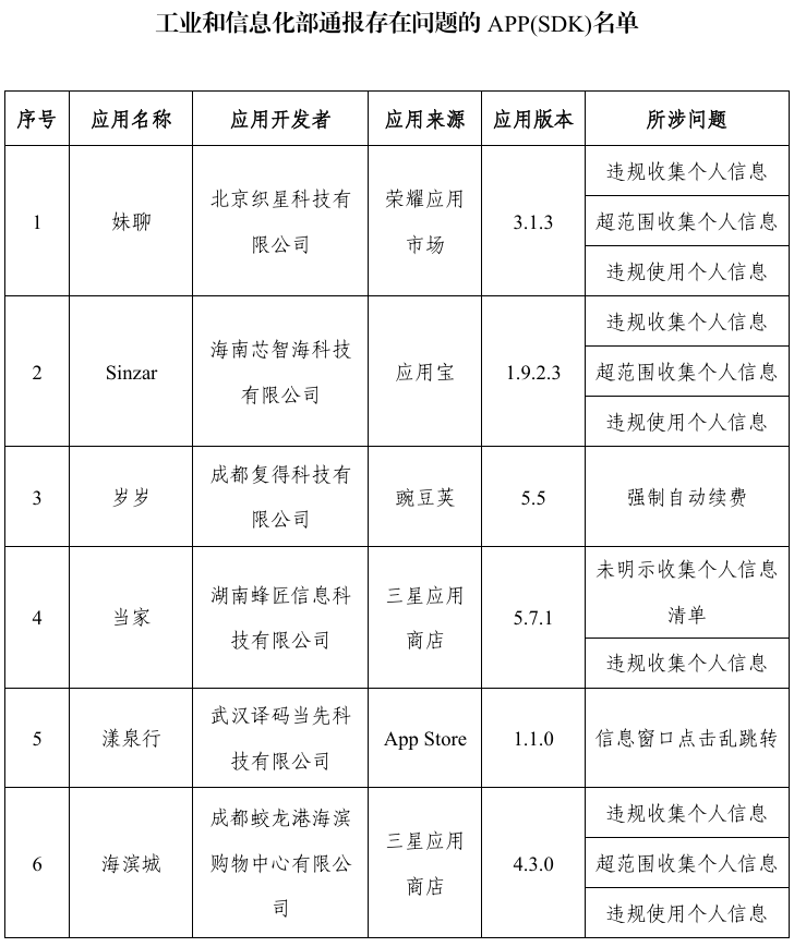 工信部通報(bào)22款侵害用戶(hù)權(quán)益行為APP(SDK)