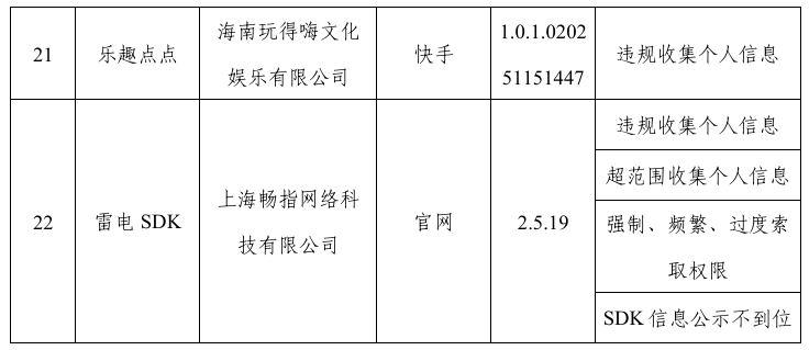 飛象網(wǎng)訊(致新/文)1月9日消息,工信部近期組織第三方檢測(cè)機(jī)構(gòu)進(jìn)行抽查,共發(fā)現(xiàn)22款A(yù)PP及SDK存在侵害用戶(hù)權(quán)益行為,并予以通報(bào)。上述APP及SDK應(yīng)按有關(guān)規(guī)定進(jìn)行整改,整改落實(shí)不到位的,工信部將依法依規(guī)組織開(kāi)展相關(guān)處置工作。