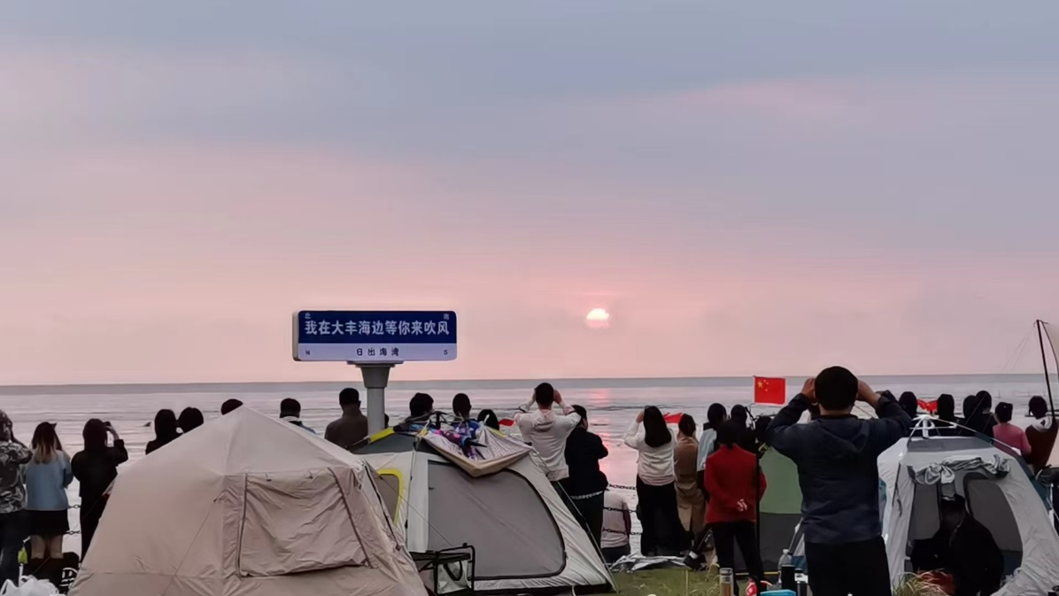 臘月廿五,鹽城大豐。從上海第一次回婆家過年的設(shè)計師周曉鷗和丈夫站在灘涂邊等日出。晨光躍出水面的那一刻,她按下了錄制鍵,把冬日清晨的日出分享進家族群。早起的爸媽叔嬸們在群里秒回“好看”和大拇指,情緒價值給得夠快夠足。