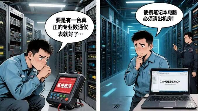 穩(wěn)定性焦慮:非專業(yè)數(shù)通儀表產(chǎn)品面臨產(chǎn)品不穩(wěn)定因素,專業(yè)數(shù)通儀表配合消費(fèi)級筆記本7×24小時(shí)滿負(fù)載運(yùn)行,過熱、藍(lán)屏、死機(jī)隨時(shí)可能導(dǎo)致測試歸零。