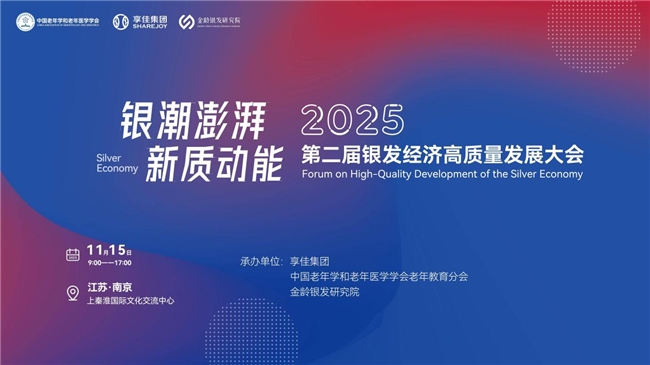 2025年11月15日,由享佳集團、中國老年學和老年醫(yī)學學會老年教育分會、金齡銀發(fā)研究院承辦的第二屆銀發(fā)經(jīng)濟高質量發(fā)展大會將在南京隆重舉行,以“銀潮澎湃,新質動能”為主題,勾勒銀發(fā)經(jīng)濟新未來。