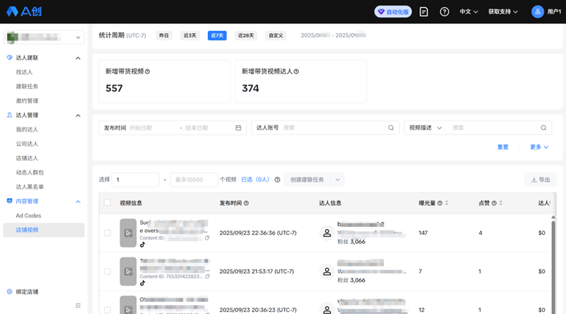 日均自動化觸達(dá)達(dá)人超10,000名,日新增合作達(dá)人穩(wěn)定在200名以上。