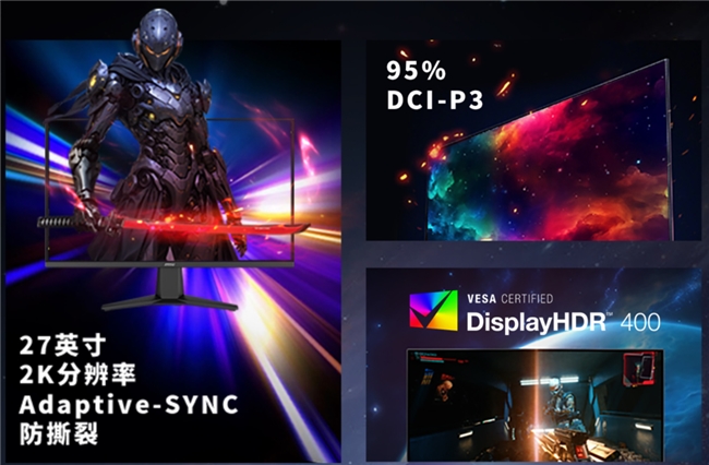 此外,顯示器支持HDR400高動(dòng)態(tài)范圍,亮度達(dá)400cd/m²,配合95% DCI-P3廣色域覆蓋,無(wú)論是游戲畫(huà)面還是影視內(nèi)容,均能呈現(xiàn)豐富層次與鮮活色彩。