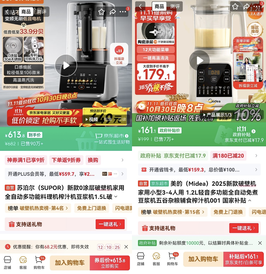 蘇泊爾 SP511R采用十重降噪設(shè)計,運行噪音低至48分貝。0 涂層 304 不銹鋼杯體采用食品級304不銹鋼內(nèi)膽,安全健康。1.5L 大容量適配家庭需求,同時支持 12 小時預(yù)約和3小時保溫。京東下單到手價僅需613.8元。