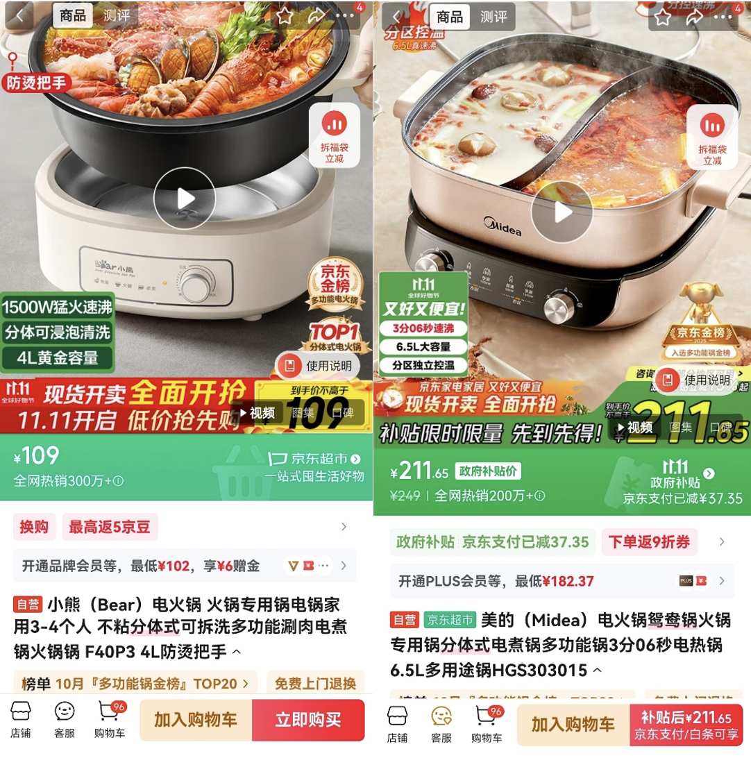 京東11.11廚房小電福利加碼 小熊電火鍋現(xiàn)貨速發(fā) 下單到手價不高于109元