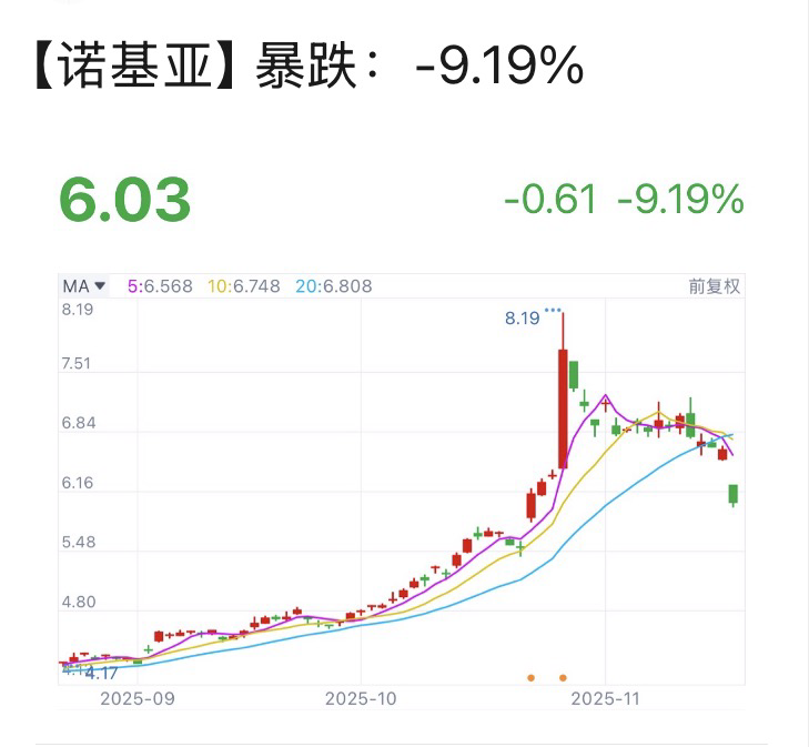 這些優(yōu)先事項(xiàng)清晰地表明,Justin領(lǐng)導(dǎo)下的諾基亞不再僅僅將自己定位為傳統(tǒng)的通信設(shè)備商,而是試圖成為 AI 時(shí)代基礎(chǔ)網(wǎng)絡(luò)與云基礎(chǔ)設(shè)施的重要提供者。然而,這場旨在描繪未來數(shù)年藍(lán)圖、振奮投資者情緒的重磅戰(zhàn)略發(fā)布會(huì),卻非常意外地迎來了在美上市的ADR股價(jià)近 10% 的快速下跌。