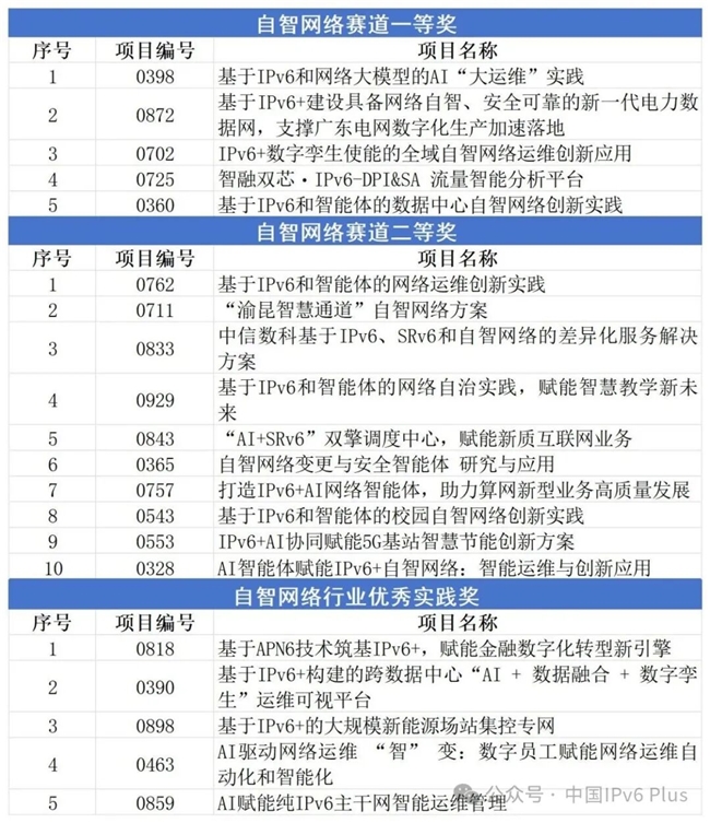 第三屆“IPv6技術(shù)應(yīng)用創(chuàng)新大賽”自智網(wǎng)絡(luò)賽道決賽獲獎(jiǎng)項(xiàng)目名單