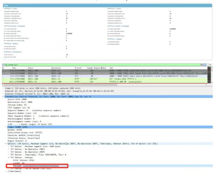 • 儀表統(tǒng)計顯示所有業(yè)務(wù)會話均建立成功,抓包顯示tcp報文攜帶正確的設(shè)備ID