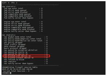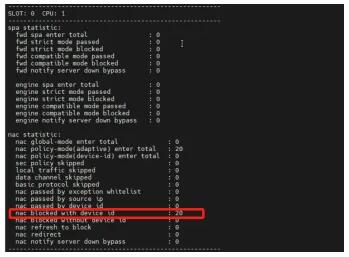 • 啟動測試例之后,在DUT上查看網(wǎng)絡(luò)準入情況:網(wǎng)絡(luò)準入驗證失敗
