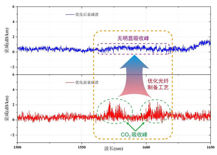 現(xiàn)網(wǎng)試點(diǎn)中發(fā)現(xiàn),C+L波段CO₂吸收峰可能干擾波分復(fù)用系統(tǒng)穩(wěn)定性。通過(guò)氣體成分優(yōu)化與封裝工藝改進(jìn),將吸收峰損耗波動(dòng)降低至工程可容忍閾值,為超寬波段(S+C+L)穩(wěn)定傳輸?shù)於ɑA(chǔ)。