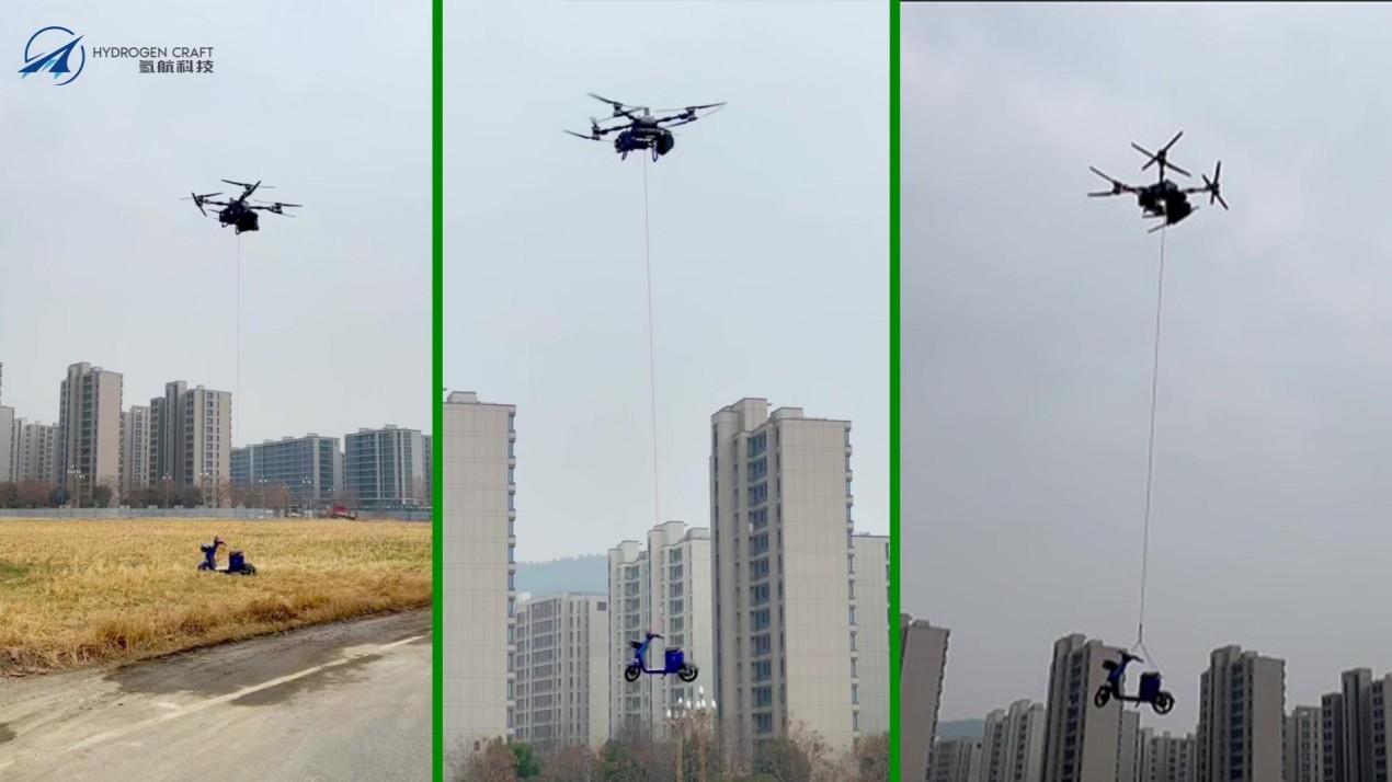 值得一提的是,氫航科技在賽場外還展現(xiàn)了一場“飛機(jī)吊小車”的跨界碰撞——最新開發(fā)的氫電版FC-100飛行演示吊運(yùn)氫電共享單車,并在20日的行業(yè)大會(huì)上通過視頻展現(xiàn)給上百位參會(huì)的領(lǐng)導(dǎo)嘉賓,展現(xiàn)了氫航航空動(dòng)力走向民生的發(fā)展歷程,成為賽事之外的一大行業(yè)亮點(diǎn)。