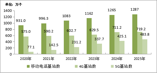 圖4-2  2020—2025年移動電話基站發(fā)展情況