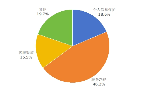 在互聯(lián)網(wǎng)信息服務(wù)投訴方面,2025年第四季度,互聯(lián)網(wǎng)信息服務(wù)投訴平臺(tái)收到的互聯(lián)網(wǎng)用戶投訴中,服務(wù)功能類投訴占比46.2%,個(gè)人信息保護(hù)類投訴占比18.6%,客服渠道類投訴占比15.5%。在178家頭部互聯(lián)網(wǎng)企業(yè)中,廣東長(zhǎng)城寬帶、天鵝到家等2家企業(yè)投訴處理及時(shí)率較低,已督促相關(guān)企業(yè)妥善處理用戶反映的問(wèn)題。