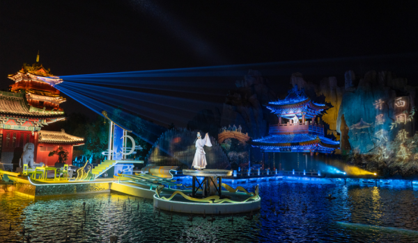 科視Christie激光投影機為《開封府·南衙千秋月》夜間文化演出呈現震撼的山體與水幕畫面