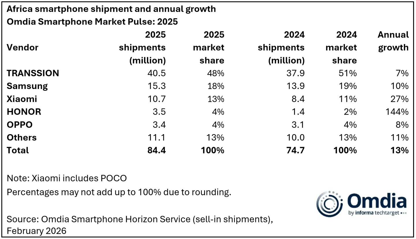 Omdia 報(bào)告顯示 2025 年非洲智能手機(jī)市場(chǎng)增長(zhǎng)強(qiáng)勁:傳音市占率 48% 遙遙領(lǐng)先,三星小米榮耀 OPPO 緊隨其后